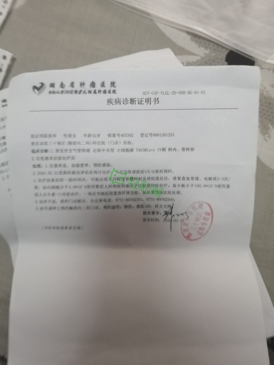我是一名普高二的学生,今年17岁,我妈妈名叫陈美华,今年43岁,家住湖南省,湘阴县,新泉寺镇黄义村三组21号,我们一家四口出生于农村,爸妈为了让我和弟弟能够受到更好的教育,把我和弟弟接到城里来读书,省吃俭用在城里打拼,爸爸是一名普通建筑工人,靠东奔西跑赚点微薄的生活费用,日子虽然清苦点,但其乐融融,这幸福时光却那么短暂,妈妈于2017年7月患乳腺癌,经过手术,化疗,放疗一系列的治疗,后续的药物治疗,这两年多以来,病情还算稳定,可好景不长,妈妈今年3月份复查,再一次被确诊为原发性肺癌,小细胞癌恶性程度高,肺内广泛转移,骨转移,这无疑是雪上加霜,妈妈乳腺癌已花光了家里的积蓄,现如今妈妈肺癌住院治疗都是亲朋戚友凑来的,可这才刚刚开始,化疗,放疗,一系列治疗在资金方面都是一个大缺口,这一切对于我家来说无疑是一个沉重的打击,但无论多少困难,我们永不放弃,我和弟弟还未长大,还需妈妈疼爱,我和弟弟还等着长大孝敬妈妈,可是妈妈还未来得及享一天清福,却命在旦夕,面对濒临破碎的家,心如刀绞,万般无奈,只好通过轻松筹发起求助,恳请大家帮帮我,帮我们共同撑起这个家,你们的每一份爱心,每一次转发都是对我家最大的支持,在这里我代表全家向大家鞠躬了,大家的爱心与帮助我们永远铭记在心,我一定发奋图强,将来一定回馈社会,做一个对社会有贡献的人,谢谢大家!